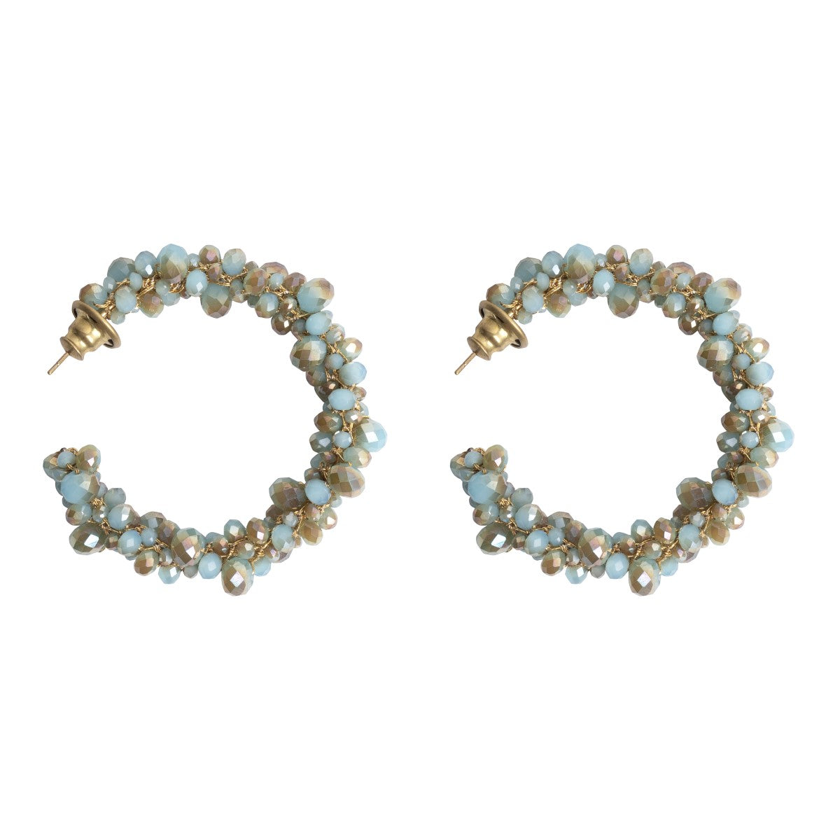 Crochet mesh beaded hoops earrings.