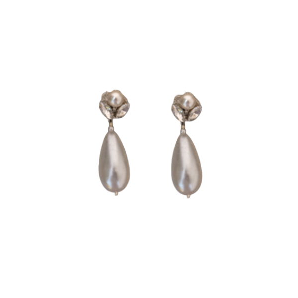 The Lolita Drop Earring combines sparkling crystals and delicate pearls in an exquisite button design, complemented by a striking large pearl teardrop. This refined accessory adds a touch of timeless grace and sophistication to any outfit, perfect for elevating your formal or evening look.