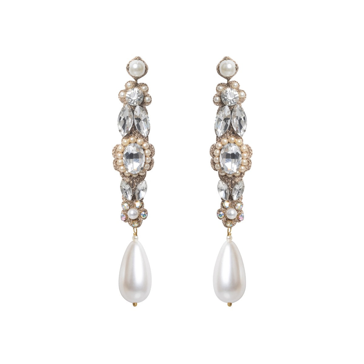 Indulge in timeless elegance with our Priya Long Statement Dangler Earrings. These exquisite pieces feature an intricate embroidered element culminating in a lustrous teardrop faux pearl, suspended gracefully from a sparkling crystal stud. The sophisticated interplay of textures and proportions creates a captivating silhouette that enhances your natural radiance. Perfect for those who appreciate refined artistry and distinctive presence in their accessories.